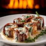 French Onion Steak Pinwheels combine tender flank steak rolled with caramelized onions and melted provolone or Swiss cheese, seared to a golden brown and finished in the oven. This decadent yet approachable dish pairs the rich flavors of French onion soup-inspired toppings with a juicy, savory beef center, perfect for an elevated main course at dinner parties or special family meals.
