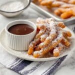 Last but certainly not least, dust the fries with a generous sprinkle of confectioners’ sugar while they’re still warm. This finishing touch elevates the dish into pure indulgence.