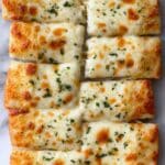 Delicious and easy-to-make Garlic Breadsticks featuring a soft Greek yogurt dough, topped with melted butter, garlic, shredded cheese, and Italian seasoning. Perfectly baked to golden brown and served warm as a savory snack or appetizer.