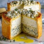A sprinkling of chopped fresh parsley adds a lovely fresh green pop that contrasts nicely with the cheese’s creamy richness. If you want to elevate the look and flavor further, consider adding a few toasted nuts or a dash of red pepper flakes for some subtle heat and texture.