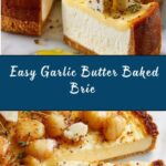 A delicious and easy-to-make Garlic Butter Baked Brie recipe featuring creamy Brie cheese topped with fragrant garlic butter, thyme, and a hint of honey, perfect for serving as an elegant appetizer with crackers or sliced baguette.