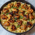This Garlic Butter Chicken Bites with Savory Creamy Parmesan Pasta is a delightful one-pan meal combining tender, golden chicken bites sautéed in garlic butter with a rich and creamy Parmesan pasta. Perfectly seasoned and garnished with fresh parsley, it’s a comforting dish ready in just 35 minutes, ideal for a flavorful weeknight dinner.