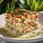 For a stunning presentation, serve this lasagna on a rustic wooden board with lemon wedges on the side. Individual portions can be plated with a drizzle of herb-infused olive oil and a sprig of fresh parsley to impress every guest at your table.