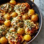 This Garlic Parmesan Chicken and Potatoes recipe offers a delicious and easy one-pan dinner featuring tender, juicy chicken thighs roasted alongside crispy, flavorful baby potatoes. Seasoned with garlic, Parmesan, and aromatic herbs, this dish is perfect for a comforting weeknight meal that combines classic flavors with minimal cleanup.