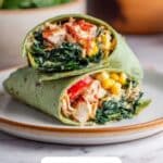 This recipe is best enjoyed cold or at room temperature since it’s a fresh salad wrap. If you do prefer a warm wrap, unwrap it and warm the tortilla briefly in a skillet or microwave, then add the chilled filling afterward for the best texture contrast.
