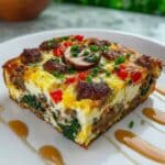 This Hearty Sausage Spinach Mushroom Egg Bake is a delicious and satisfying breakfast casserole featuring Italian sausage, fresh spinach, mushrooms, and mozzarella cheese baked in a fluffy egg mixture. Perfect for a crowd or meal prep, it offers a balanced combination of protein and vegetables with warm, savory flavors.