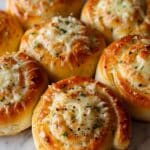 These Homemade Garlic Cheese Rolls are soft, fluffy dinner rolls filled with a savory garlic and cheese mixture. Perfect as a side dish for pasta nights or cozy soups, these rolls feature a blend of mozzarella and Parmesan cheeses with a buttery garlic filling, topped with a garlic butter glaze for extra flavor. Made from scratch with yeast and baked to golden perfection, they are a delicious treat that combines classic American and Italian-inspired flavors.