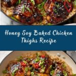 Tender and flavorful Honey Soy Baked Chicken Thighs featuring a simple marinade of honey, soy sauce, garlic, and ginger, baked to crispy, golden perfection. This easy-to-make dish offers a perfect balance of sweet and savory flavors, ideal for a weeknight dinner or meal prep.