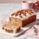 - Frost the bread: Spread the cream cheese frosting evenly over the cooled bread. Slice and serve.