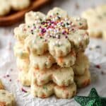 - Prepare Glaze and Decorate: In a small bowl, whisk together powdered sugar, milk, vanilla extract, and lemon juice until smooth. Drizzle the glaze over the cooled cookies and add sprinkles or nonpareils if desired.