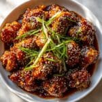 Korean-Style Popcorn Cauliflower is a crispy, bite-sized cauliflower dish coated in a spicy-sweet gochujang sauce, delivering the perfect balance of heat and sweetness. Deep-fried to golden perfection and garnished with sesame seeds and scallions, it is an addictive appetizer or snack inspired by Korean flavors.