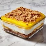 5. Sprinkle Cake Mix: Evenly cover the pie filling and cream cheese layer with the lemon cake mix, making sure to cover the filling completely.