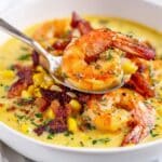 This Louisiana Shrimp and Corn Bisque is a rich, creamy seafood soup bursting with the flavors of crispy bacon, fresh shrimp, sweet corn, and classic Cajun spices. Perfect for a comforting meal, this bisque combines a homemade shrimp stock base with a buttery roux, sautéed vegetables, and a splash of sherry for depth and complexity.