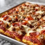 This Ultimate Meat Feast Pizza Casserole is a hearty, indulgent dish perfect for meat lovers. Combining ground beef, pork sausage, and pepperoni with classic Italian seasonings and rich cheeses, this comforting casserole layers a savory meat sauce with melted mozzarella and a golden pizza crust. It’s a crowd-pleaser that’s easy to prepare and bake in under an hour, making it ideal for family dinners or casual get-togethers.