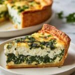 This Mediterranean Spinach Cheese Feta Quiche is a savory, flavorful dish perfect for breakfast, brunch, or a light dinner. Featuring a crispy pie crust filled with sautéed fresh spinach, tangy feta cheese, and melty shredded cheese, all enveloped in a rich egg and milk custard seasoned with salt, pepper, and nutmeg, it offers a delightful combination of textures and Mediterranean-inspired flavors.