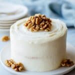 - Frost the Cake: Once the cake is fully cooled, spread the cream cheese frosting evenly over the top. Optionally, sprinkle with additional chopped walnuts for decoration and texture.