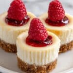 If you want to prepare these mini cheesecakes ahead of time, they freeze well. Place them in a single layer on a baking sheet and freeze. Once solid, transfer to a freezer-safe container with parchment paper between layers. Freeze for up to 1 month and thaw overnight in the fridge before serving.