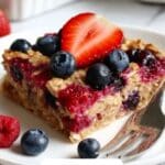 The Mixed Berry Baked Oatmeal Recipe freezes beautifully. Slice it into portions and wrap each piece tightly in plastic wrap, then place them in a freezer-safe bag or container. Frozen oatmeal will keep well for up to 3 months and thaw quickly overnight in the fridge.