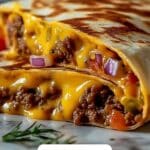 These Nachos Cheese Beef Wraps are a Tex-Mex delight featuring seasoned ground beef, melty nacho cheese, and crunchy tortilla chips all wrapped inside warm flour tortillas. Pan-toasted until golden and crispy, these wraps combine gooey cheese, fresh veggies, and a subtle kick of jalapeños for a satisfying meal perfect for lunch or dinner.