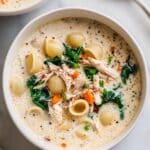 A creamy and comforting Olive Garden-inspired Chicken Gnocchi Soup loaded with tender shredded chicken, potato gnocchi, fresh spinach, and aromatic vegetables in a rich broth. Perfect for a cozy meal in just 35 minutes.