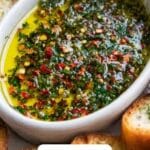 Because this dip is oil-based with fresh herbs, freezing is not recommended as it can alter the texture and flavor of the olive oil and garlic. It’s best enjoyed fresh or refrigerated.