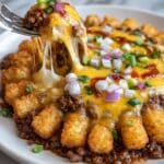 Reheat leftovers in a microwave or oven until warmed through. If you froze it pre-tater tots, add tater tots on top and bake at 400°F for about 20 minutes until crispy again. This refreshes the texture and revives that irresistible crunch.