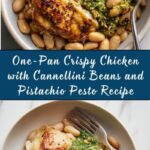 A flavorful and easy one-pan recipe featuring crispy bone-in chicken thighs served over creamy cannellini beans with vibrant baby spinach, all topped off with a bright and nutty homemade pistachio pesto. Perfect for a Mediterranean-inspired gluten-free dinner.