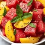 This Peach Watermelon Salad is a refreshing and vibrant dish perfect for warm weather. Combining juicy watermelon and sweet peaches with fresh herbs, zesty lime juice, and a touch of red onion, it’s a delightful balance of flavors and textures. Optionally topped with crumbled feta cheese, this salad makes a fantastic light appetizer or side dish.