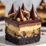 This recipe relies heavily on peanut butter and peanut butter cups, so it’s tricky to make it nut-free without losing the signature flavor. However, you could experiment with sun butter and nut-free chocolate candies but expect a different taste.