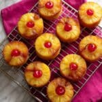 7. Cool and Invert: Allow the cupcakes to cool in the pan for 5 minutes. Then carefully run a knife around the edges of each cupcake and invert them onto a wire rack or tray to reveal the pineapple upside-down topping.