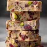 Delicious and nutritious Pistachio Cranberry Chia Bars made with wholesome ingredients like rolled oats, Medjool dates, pistachios, dried cranberries, and chia seeds. These no-bake bars are naturally sweetened with honey or maple syrup and almond butter, offering a tasty and energy-packed snack perfect for on-the-go or as a healthy treat.