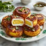 Polish Egg Cutlets (Kotlety Jajeczne) are a traditional and delicious meatless Polish main course made from finely chopped hard-boiled eggs mixed with sautéed onions, breadcrumbs, and fresh herbs, shaped into patties and fried until golden and crispy. Served warm, they pair beautifully with sour cream, mashed potatoes, or a fresh salad, offering a comforting and protein-rich dish perfect for vegetarians.