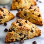 Delight in these moist and tender Pumpkin Chocolate Chip Scones, bursting with warm pumpkin spice and melty semi-sweet chocolate chips. Perfectly flaky with a hint of cinnamon sugar on top, these scones make a cozy, comforting treat for breakfast or afternoon tea.