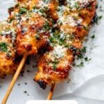 Once cooked, remove the skewers from the grill and let them rest for a few minutes—this step helps the juices redistribute for maximum flavor. Sprinkle extra parmesan or chopped fresh parsley on top for a fresh, colorful touch before serving.