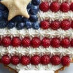 This Red, White, and Blueberry Flag Pizza is a festive and delicious dessert perfect for patriotic celebrations. Featuring a baked sugar cookie crust topped with a creamy cream cheese mixture and fresh raspberries and blueberries arranged to resemble the American flag, this vibrant no-bake topping makes for an impressive and flavorful treat that serves a crowd.
