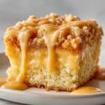 Slice the cake into generous portions and serve each piece warm with a healthy spoonful of that luscious warm vanilla sauce drizzled over the top. You’re ready to indulge in a perfect bite of comfort and elegance.