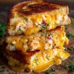 A delicious and easy-to-make Salmon Grilled Cheese sandwich featuring flaky cooked salmon, melted cheddar cheese, fresh dill, and tangy red onion, perfectly grilled between buttery bread slices. This 25-minute recipe serves 2 and offers a flavorful twist on a classic sandwich.