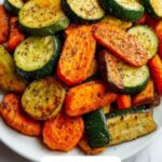 In a large bowl, toss your sliced zucchini and carrots with the olive oil, dried thyme, parsley, garlic powder, oregano, salt, and pepper. Make sure everything is evenly coated so the herbs and spices have maximum chance to flavor every piece.