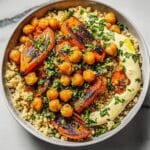 This savory one-pan roasted carrot and chickpea bowl is a quick, nutritious, and flavorful meal perfect for busy weeknights. Roasting brings out the natural sweetness of carrots and adds a delightful crispness to chickpeas, while a creamy tahini dressing with maple syrup and lemon juice balances the spices with a touch of tangy sweetness. Simple to prepare and packed with protein and fiber, this dish is both hearty and wholesome.