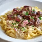 - Serve: Plate the pasta and steak mixture, garnish generously with chopped fresh parsley for color and freshness, and serve immediately while warm.