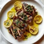 This quick and flavorful Seared Tuna Steaks recipe features perfectly cooked tuna steaks topped with a vibrant lemon, caper, and parsley butter. Ideal for a healthy and elegant main course, this dish balances the rich taste of tuna with bright citrus and savory herbs for a Mediterranean-inspired meal.