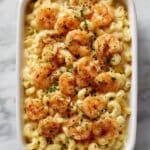 Yes! You can assemble the pasta, sauce, and shrimp in the baking dish, cover it tightly, and refrigerate for up to 24 hours before baking. This makes it perfect for busy days or entertaining.