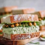 Because avocado tends to change texture when frozen, it’s best not to freeze the fully mixed sandwich filling. However, you can freeze extra mashed chickpeas separately and combine them fresh with avocado and pickles when ready to enjoy the full flavor and creamy consistency.