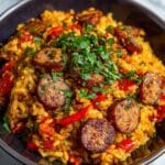 A hearty and flavorful Southern-American one-pan meal featuring smoky sausage, aromatic spices, and tender rice cooked together on the stovetop for an easy and satisfying dinner.