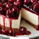 This Spiked Cherry Cheesecake combines a rich dark chocolate biscuit base with a creamy, smooth cheesecake filling enhanced with full-fat cream cheese and mascarpone. Topped with kirsch-infused black cherries in a homemade syrup, this dessert offers a delightful balance of chocolate, creamy tang, and boozy cherry sweetness. Perfect for special occasions or indulgent treats.