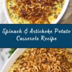A creamy and flavorful Spinach & Artichoke Potato Casserole that combines instant mashed potatoes, shredded hash browns, spinach, artichoke hearts, and three types of cheese for a comforting, cheesy side dish or vegetarian main. This casserole is baked to golden perfection with a crispy topping of parmesan and French fried onions.