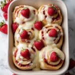 These Strawberry Cheesecake Cinnabon Rolls combine soft, fluffy cinnamon rolls with a rich cheesecake filling and fresh strawberries for a delightful twist on a classic dessert. Perfectly baked and topped with creamy cream cheese icing and juicy fresh strawberries, they make a wonderful treat for breakfast, brunch, or dessert.