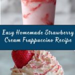 A delicious and creamy Strawberry Cream Frappuccino that blends frozen strawberries, milk, and cream to create a refreshing summer drink, topped with whipped cream and optional fresh strawberry garnish.