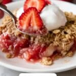 This comforting Strawberry Rhubarb Baked Oatmeal combines wholesome rolled oats with fresh strawberries and tangy rhubarb, all flavored with cinnamon and sweetened naturally with honey or maple syrup. Topped with a crunchy nut and oat mixture and served with coconut whipped cream, this baked oatmeal makes a delicious and nutritious breakfast or snack option packed with fiber and antioxidants.