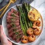 Slice the rested steak and arrange it elegantly on your plates alongside the buttery shrimp. Generously spoon your vibrant chimichurri sauce over both to complete this stunning dish. The herby sauce complements both proteins perfectly, creating a harmony of flavor you won’t be able to get enough of.